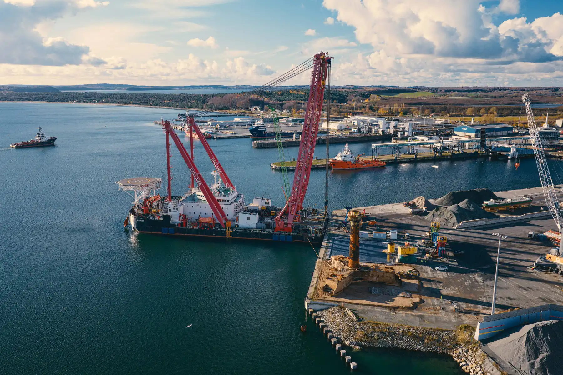Unterstützt wurde das Projekt durch die Fährhafen Sassnitz GmbH und die Mukran Port Terminals GmbH (MPT), die Logistik, Flächenbereitstellung und Infrastrukturmaßnahmen koordinierten. Der Hafen Mukran übernahm dabei die zentrale logistische Rolle. Als auf Offshore-Projekte spezialisierter Terminal bot er die notwendige Infrastruktur für Annahme, Zwischenlagerung und Handling großformatiger Komponenten. Seine Schwerlastflächen, der direkte Tiefwasserzugang und die Nähe zu Offshore-Windparks in der Ostsee machten Mukran zum idealen Standort für anspruchsvolle Demontagelogistik.